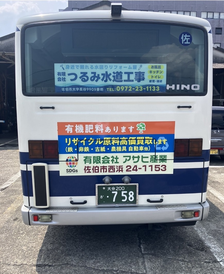 この度私事ですが、兼ねてより楽しみにしていた大分バスの後部広告がついに掲載されました^^