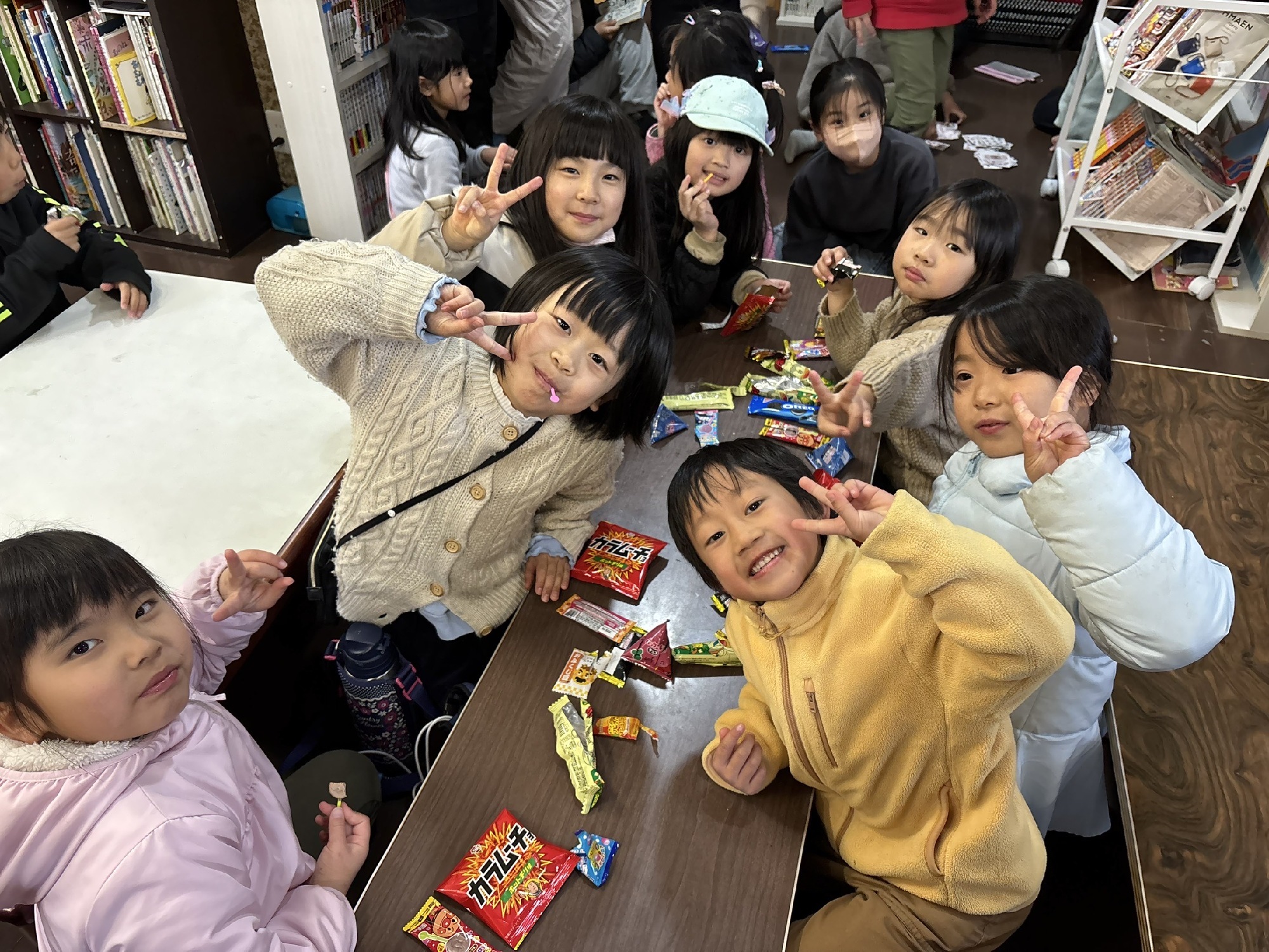 にぎやかにオヤツを食べていました