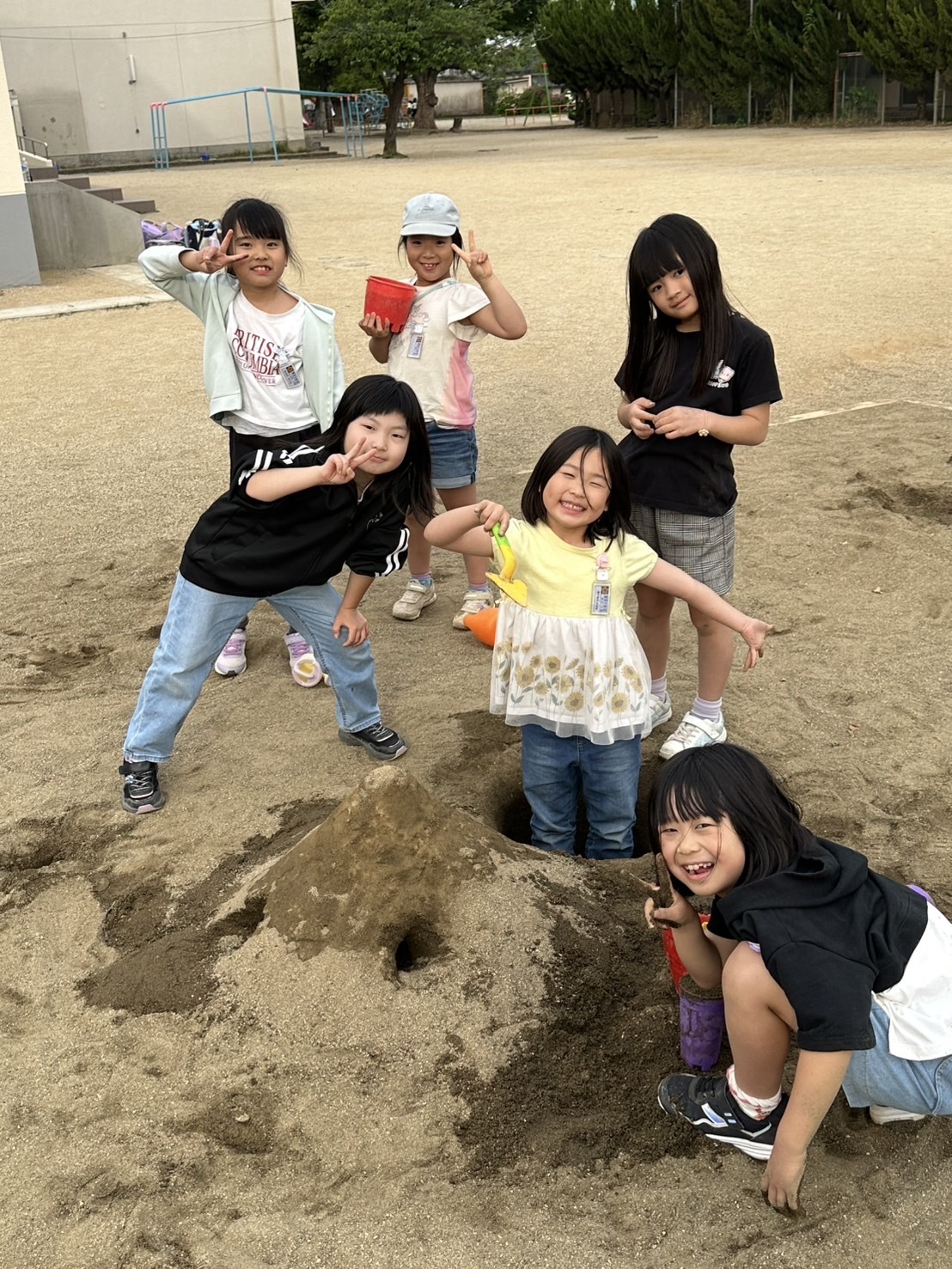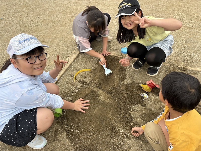 大人も砂遊びや