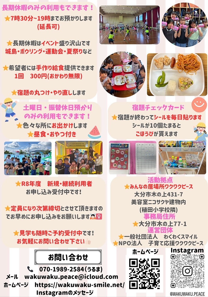 ★夏休みなどの長期休暇中は、7:30~19:00まで預かります