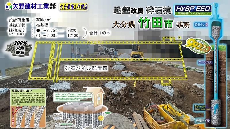 【eco地盤改良】大分県 竹田市 HySPEED350 砕石杭 矢野建材工業株式会社