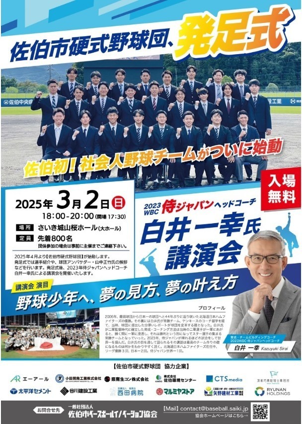 さらに、2023年WBC侍ジャパンヘッドコーチの白井一幸氏による講演会を開催いたします!