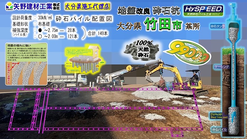 【eco地盤改良】大分県 竹田市 HySPEED350 砕石杭 矢野建材工業株式会社