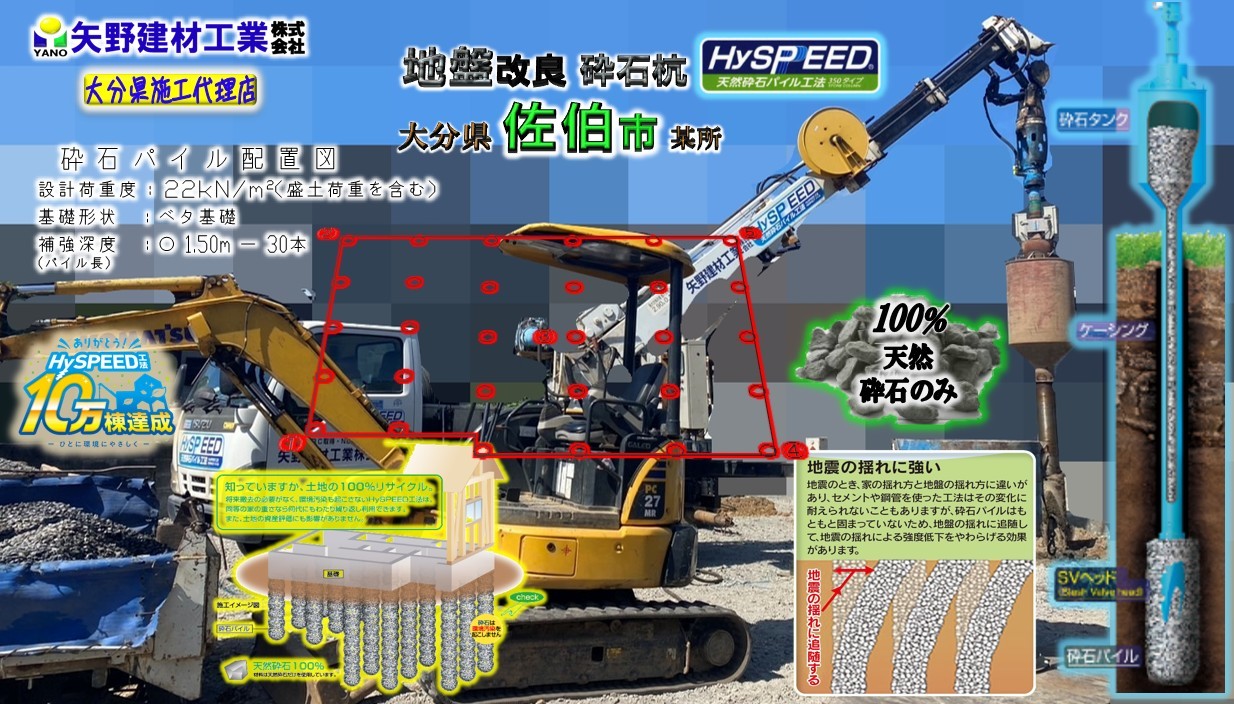 【eco地盤改良】大分県 佐伯市 HySPEED350 砕石杭 矢野建材工業株式会社