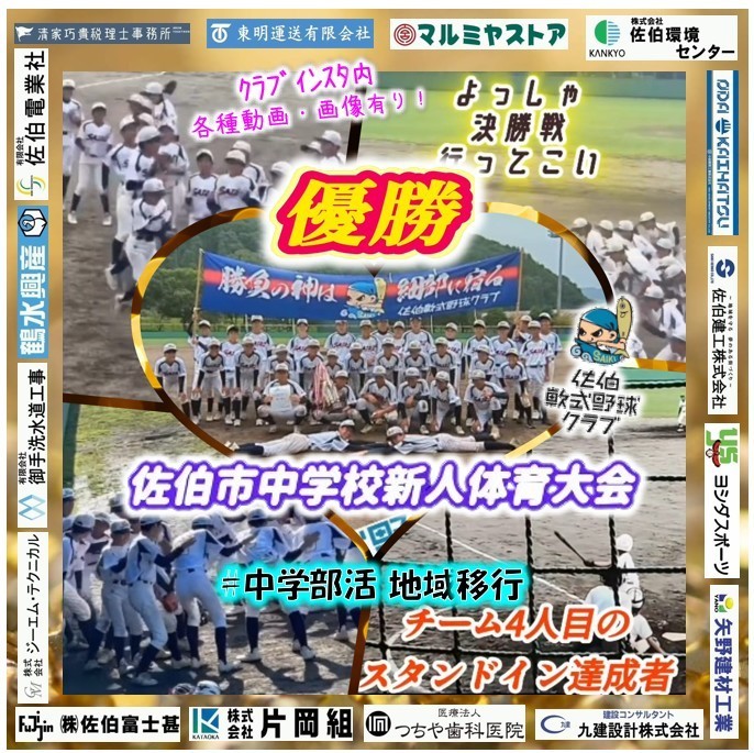 優勝! 佐伯軟式野球クラブ 佐伯市中学校新人体育大会