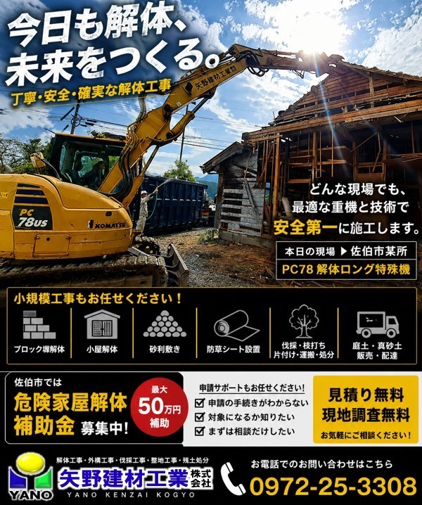 #佐伯市 #空き家 #空き家解体 #解体工事 #解体補助金