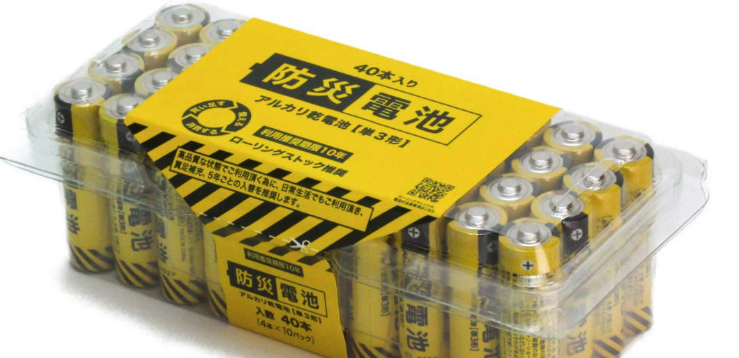懐中電灯やラジオなど、様々な防災用品で使用するため、汎用性の高い乾電池は必須です。