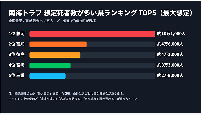 この記事では、想定死者数が多い県トップ5をランキングで紹介し、