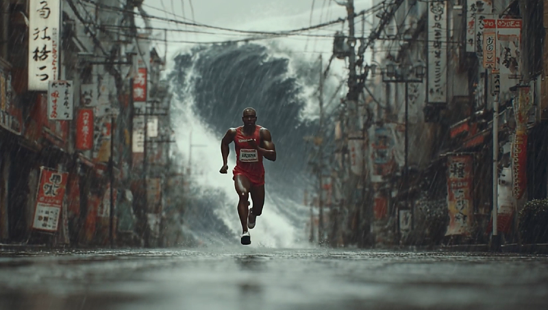 津波の速度はオリンピックの100m走る選手と同等、もしくはそれより速いです。