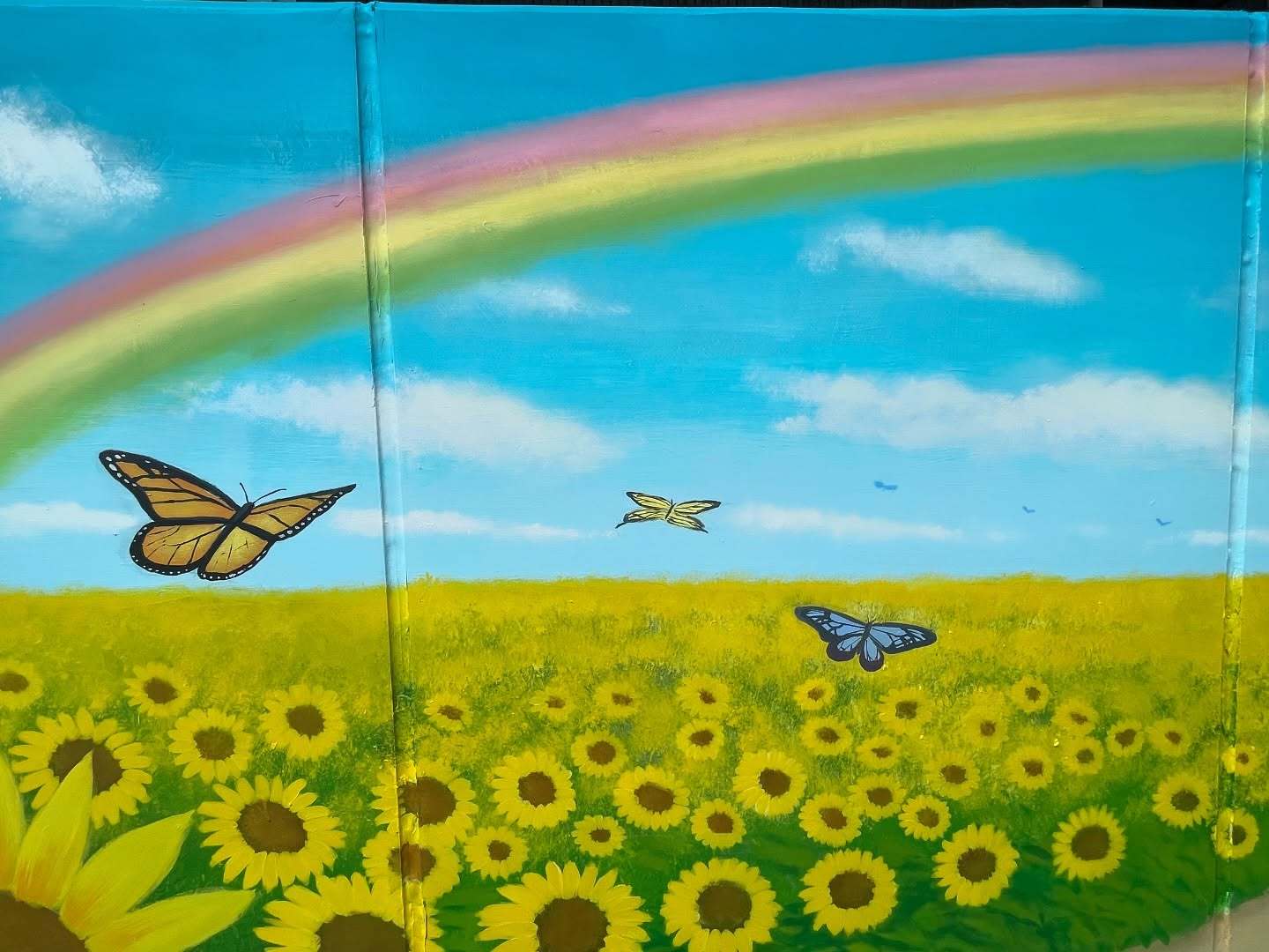 そして、雨上がりにかかる希望の虹のアーチを描きました。