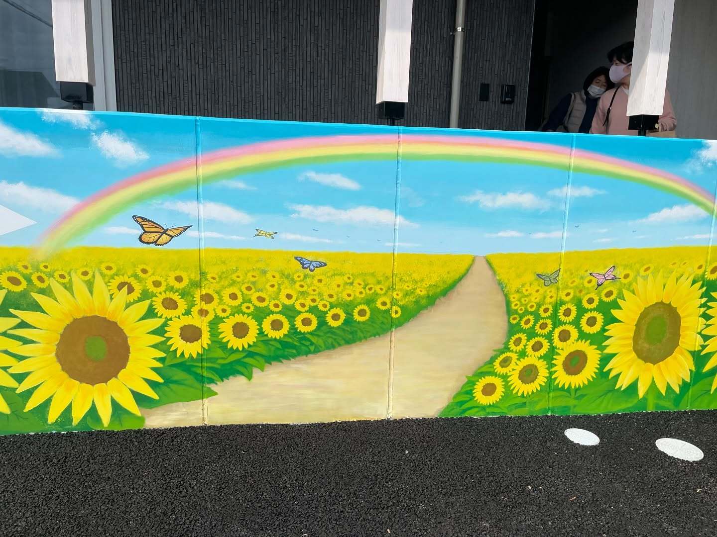 4月1日に、新しくオープンする予定のグループホームの建物入り口の壁面に描かせて頂きました。