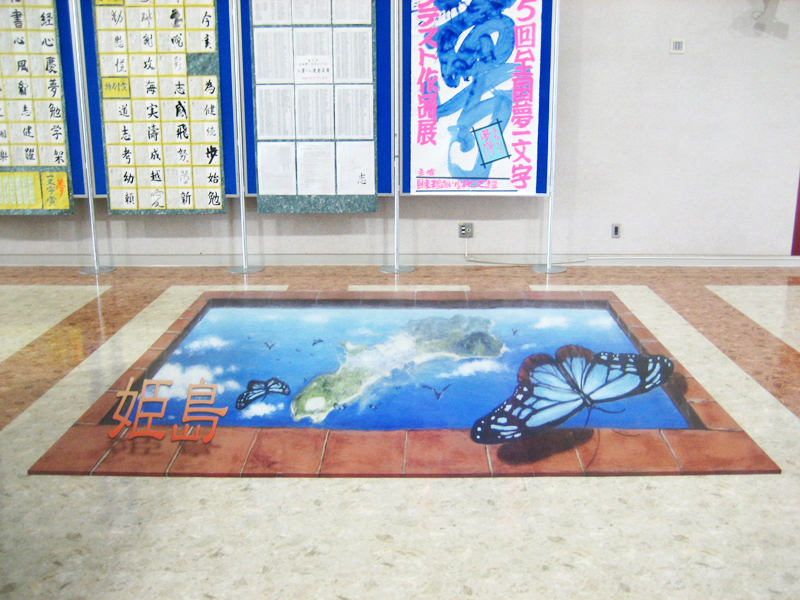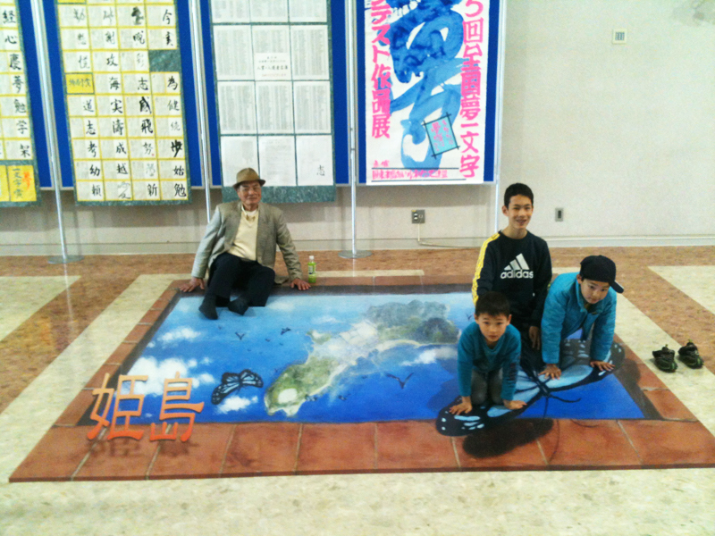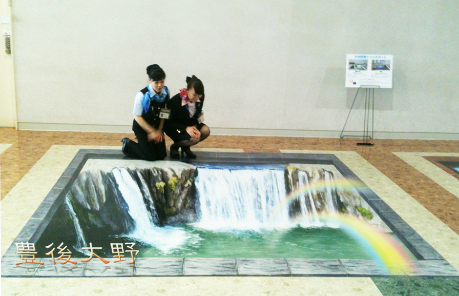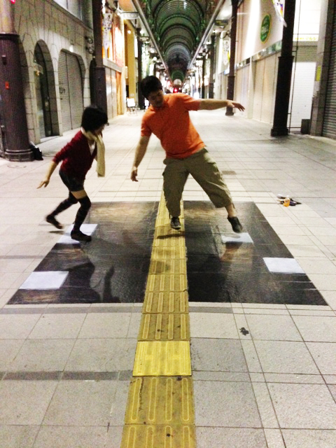 2012年にガレリア竹町商店街(大分市)にて、床に描く3Dトリックアートを制作した翌年に、