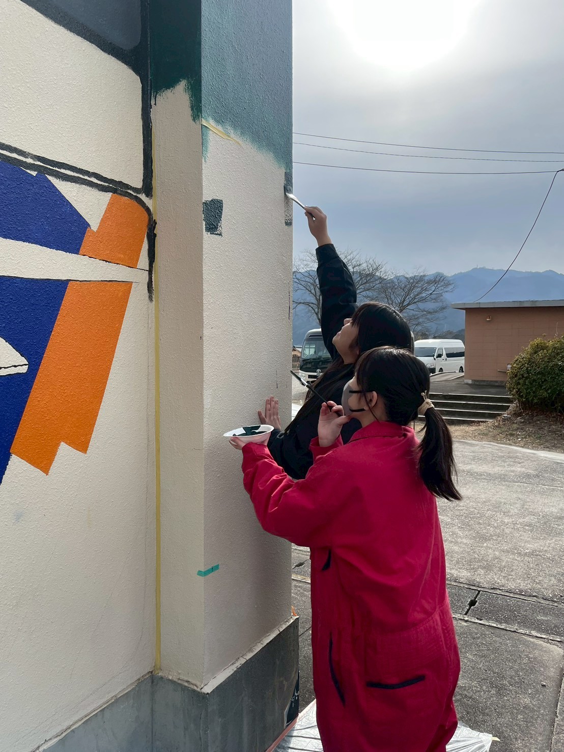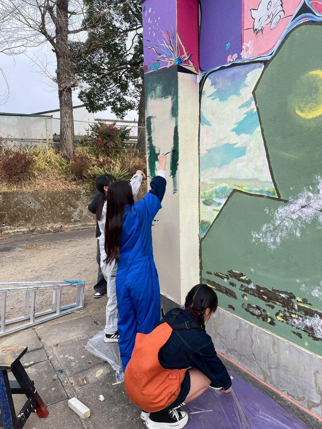 美術部の子たちも、最初は初の壁画制作にとても緊張してましたが、始まったらすごくテキパキと動いてくれて、本当にいい感じに塗ってくれました。