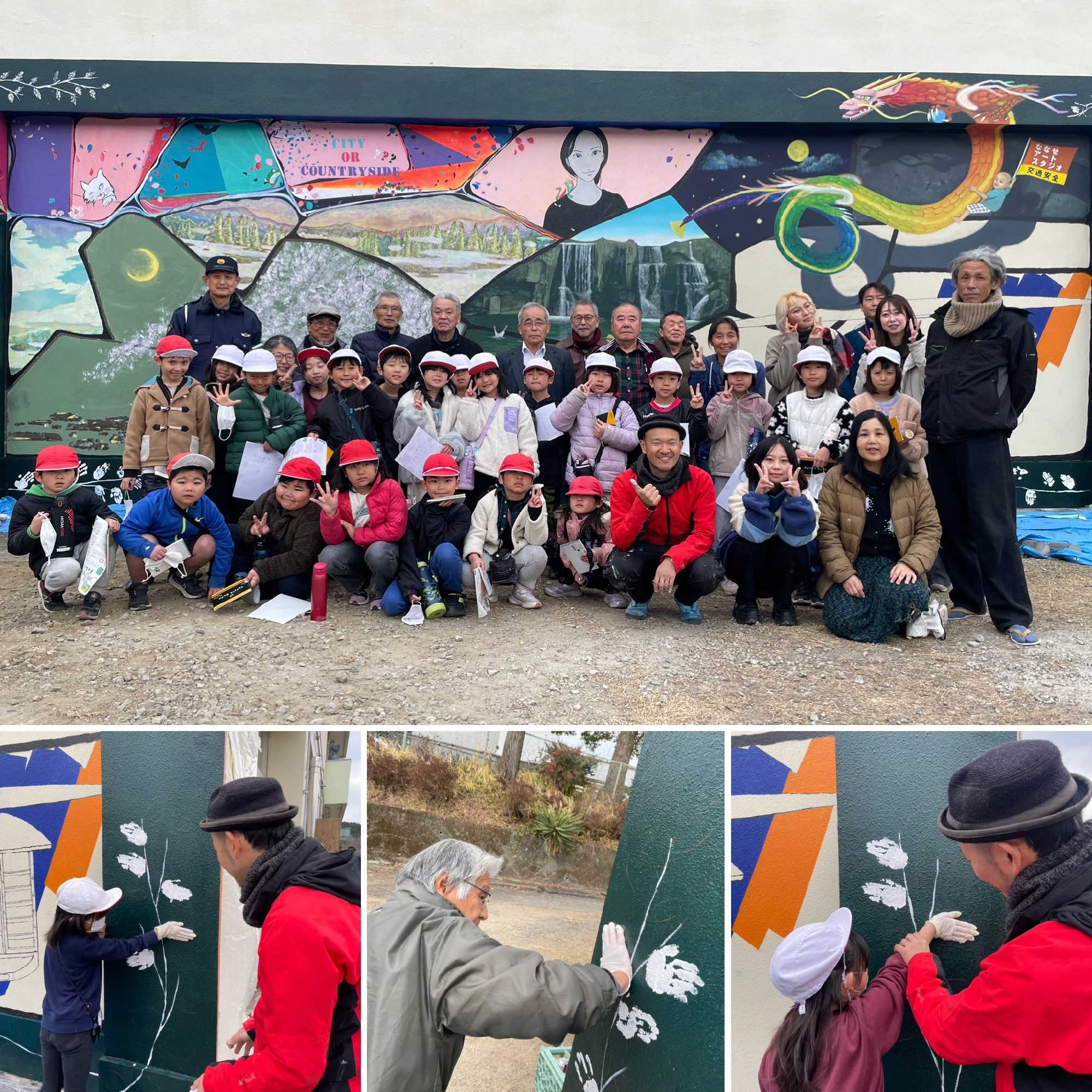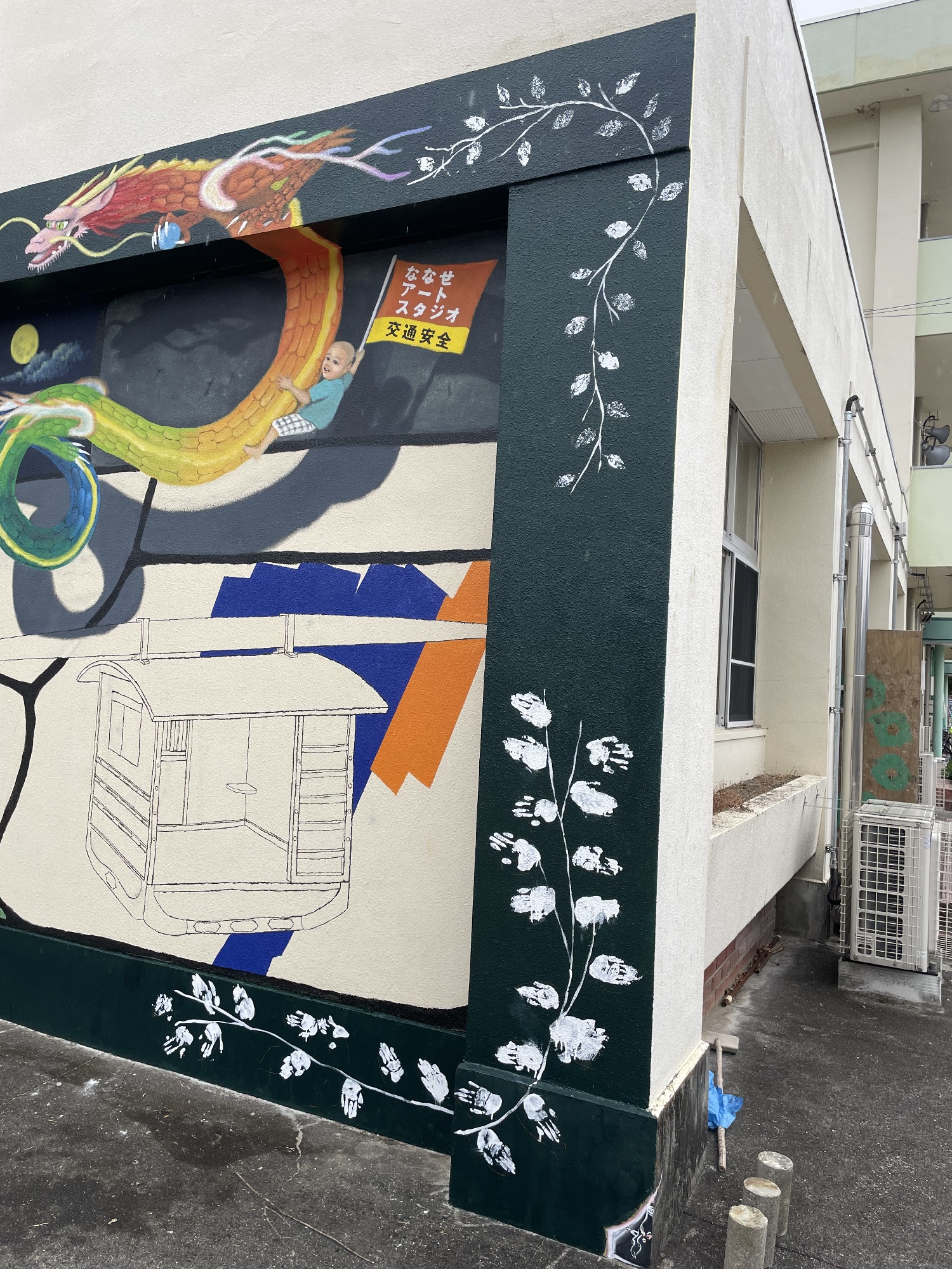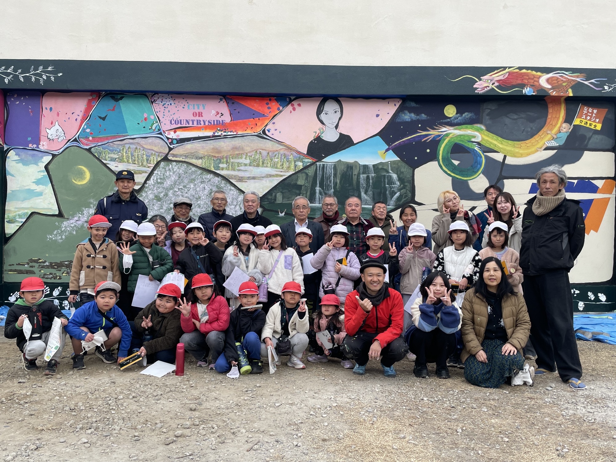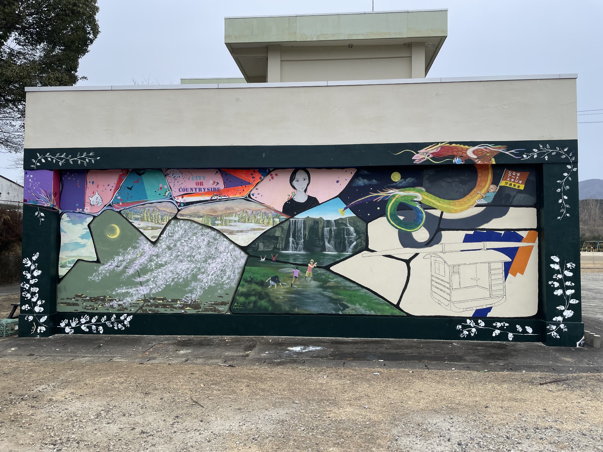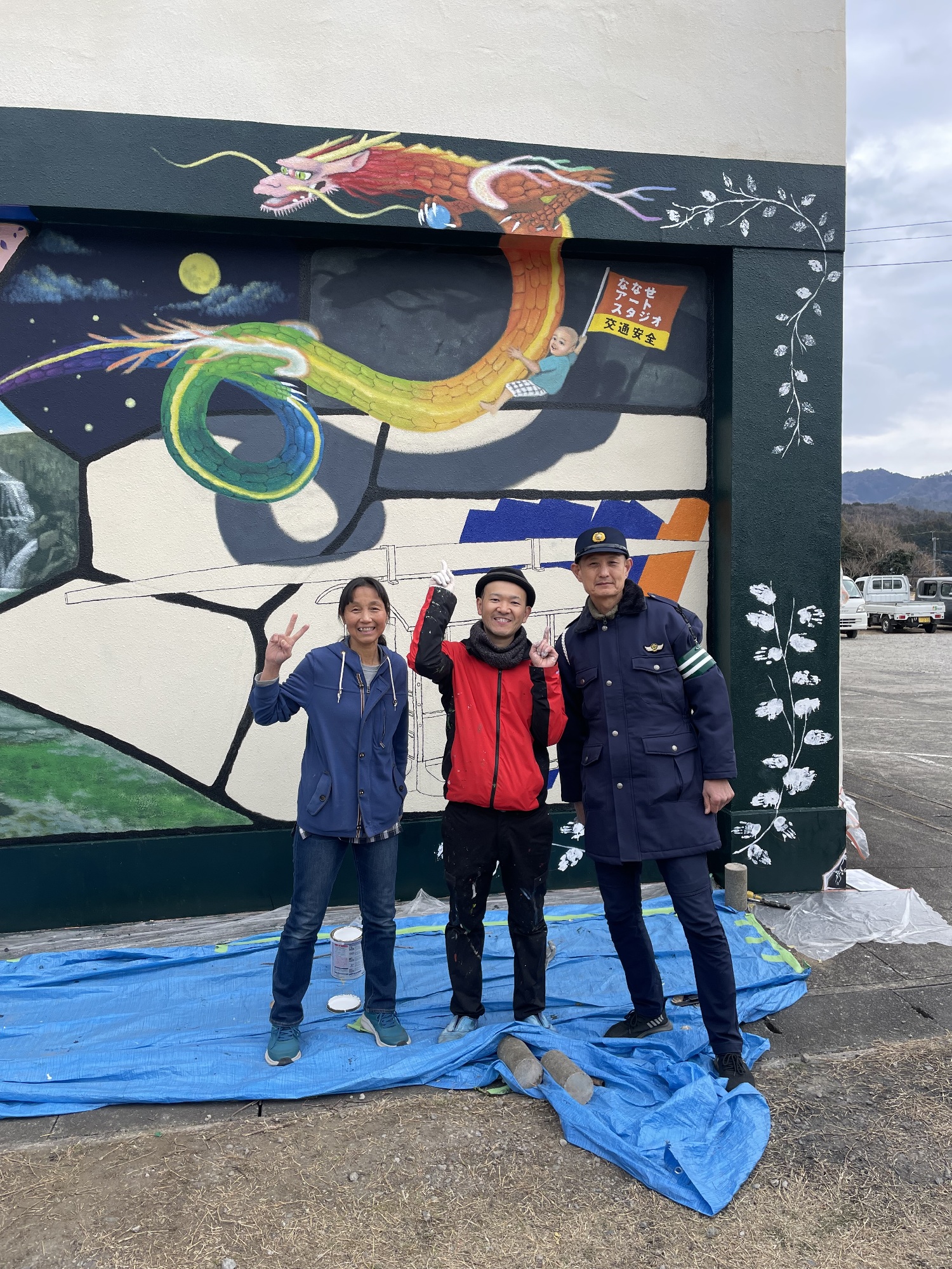 昨日2月10日、ななせアートスタジオ(大分市野津原)でのラスト制作『地域と生きる壁画』が完成しました!