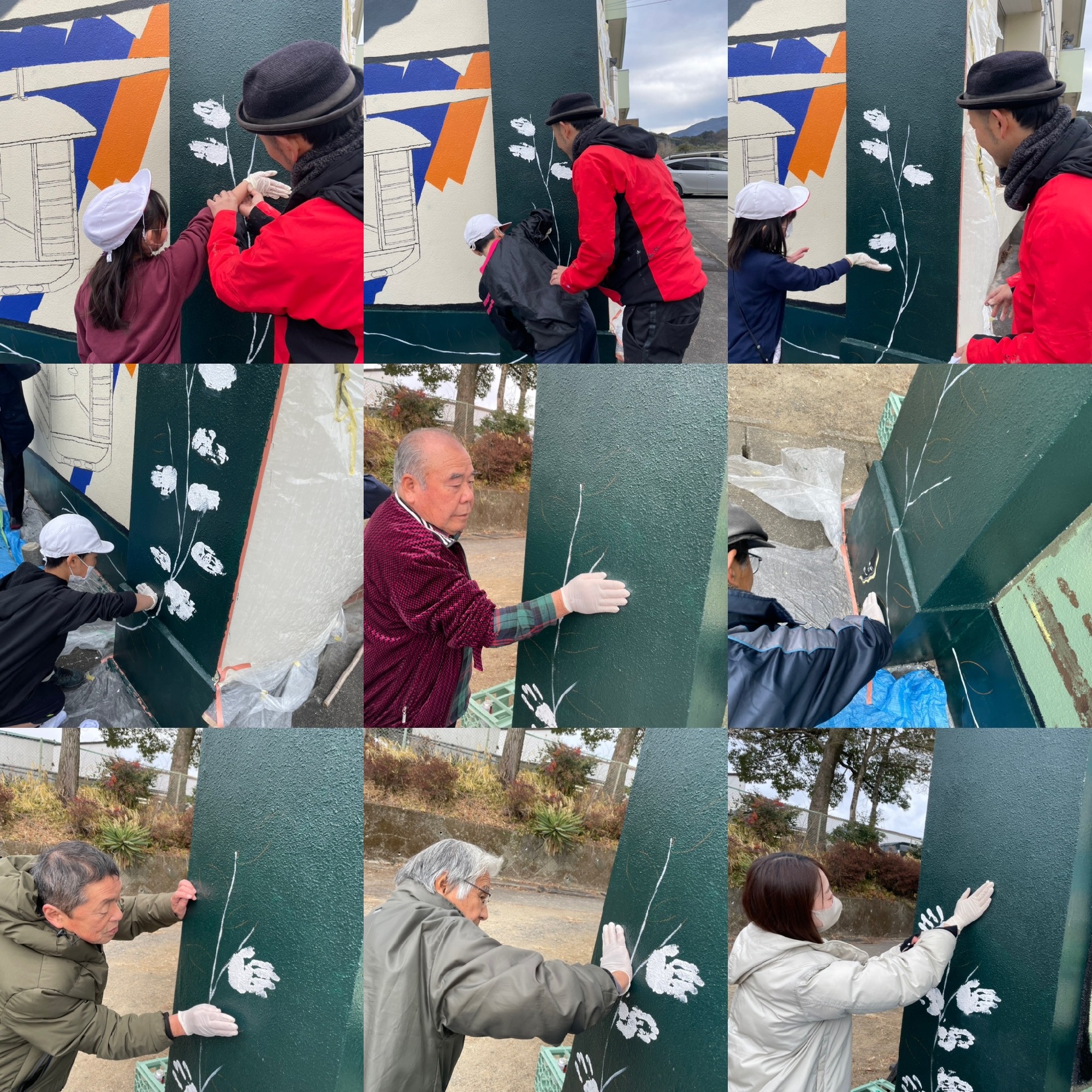 イベントでは、まず小学生が葉っぱを模した手形をつけてくれて、その後、地域の方々、校長先生、市役所の方々も皆さん参加してくれて、みんなが童心に帰って、楽しそうにしてくれた様子が本当に幸せに感じました。