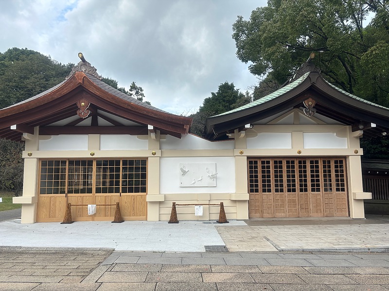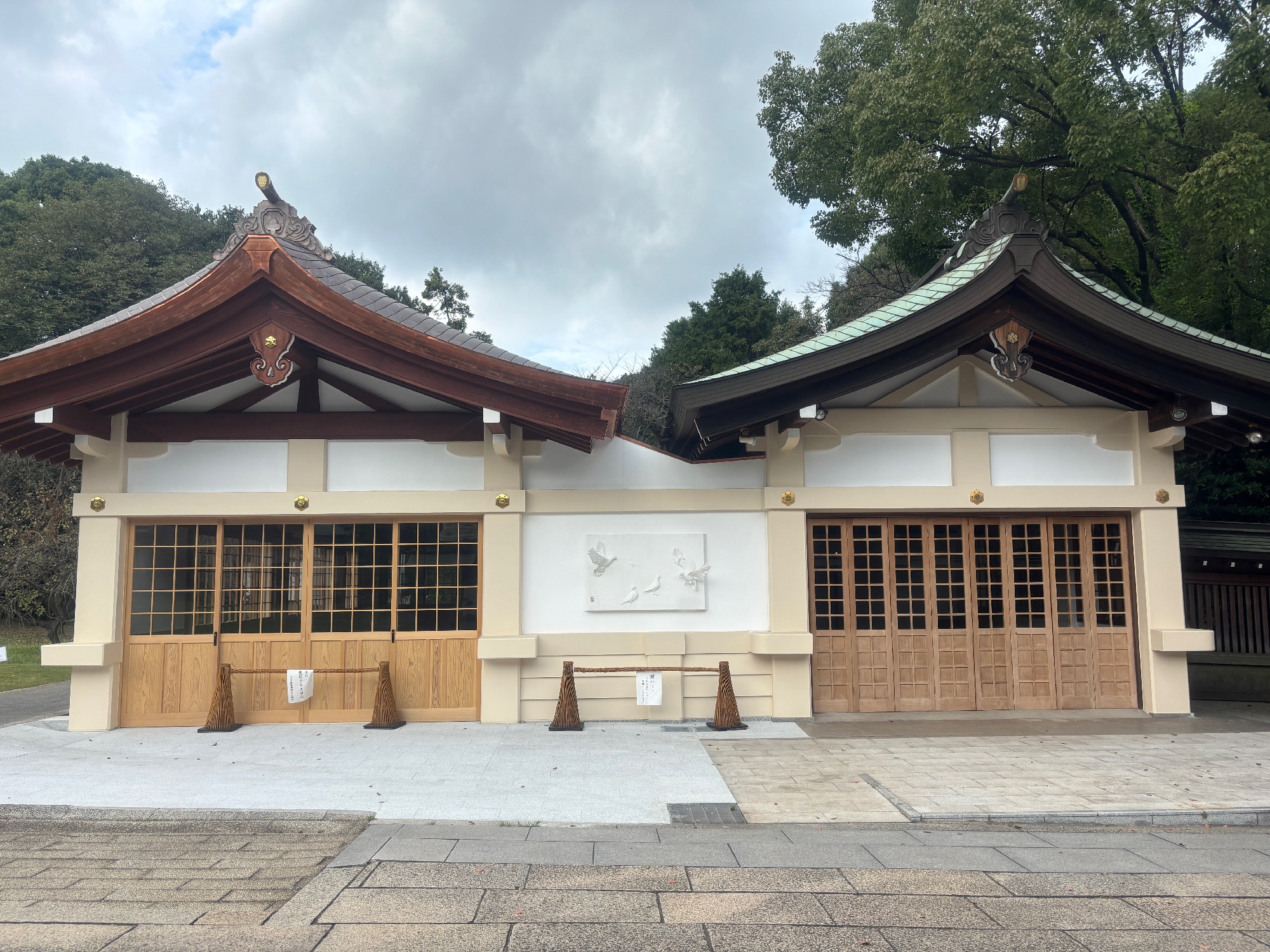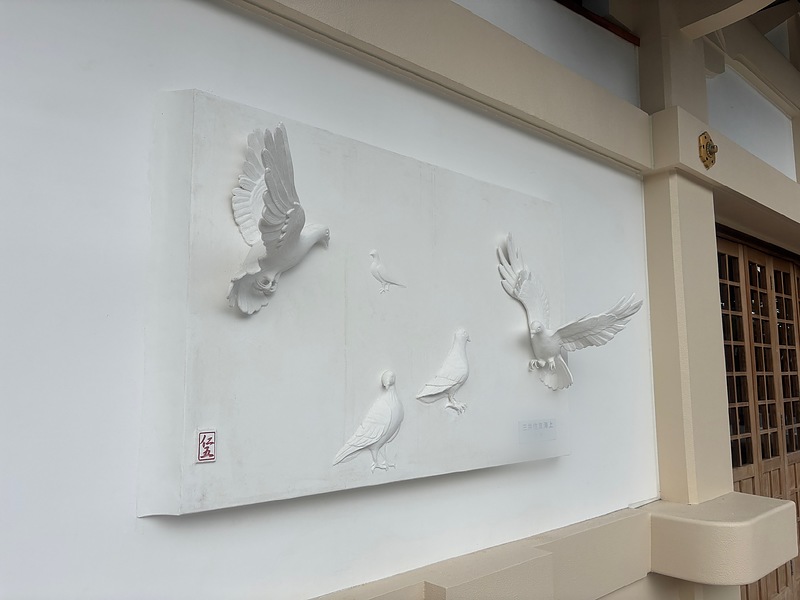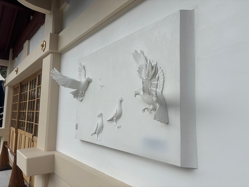 大分市護国神社の新しくできた休憩所に、漆喰で制作した鳩の鏝絵を納めさせていただきました。