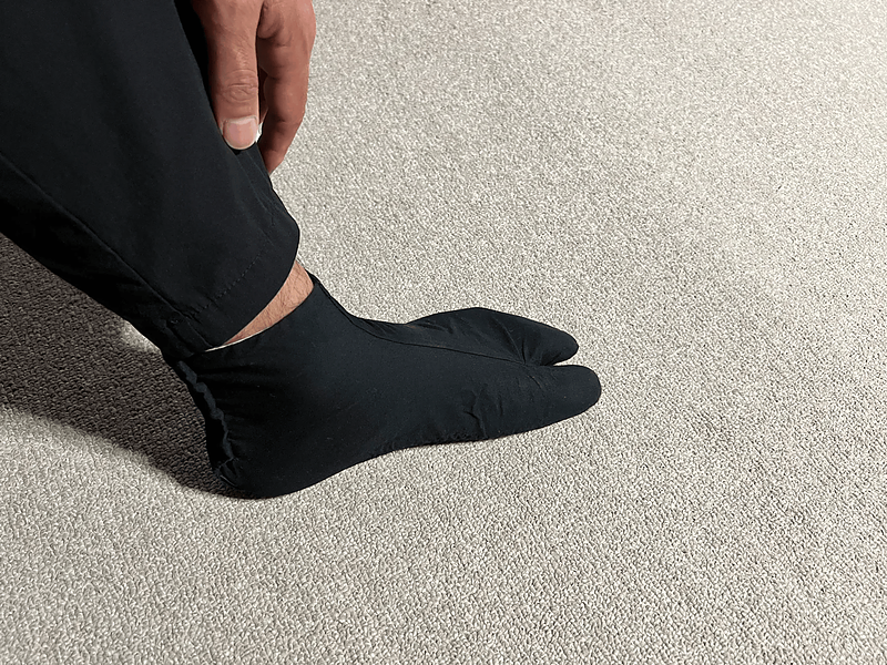 これが、足首まわりがスッと抜けていて涼しく、室内でも畳やフローリングでも滑らず快適なのです。