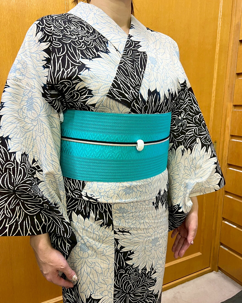 シンプルな浴衣でも、帯結びひとつで印象は大きく変わります。