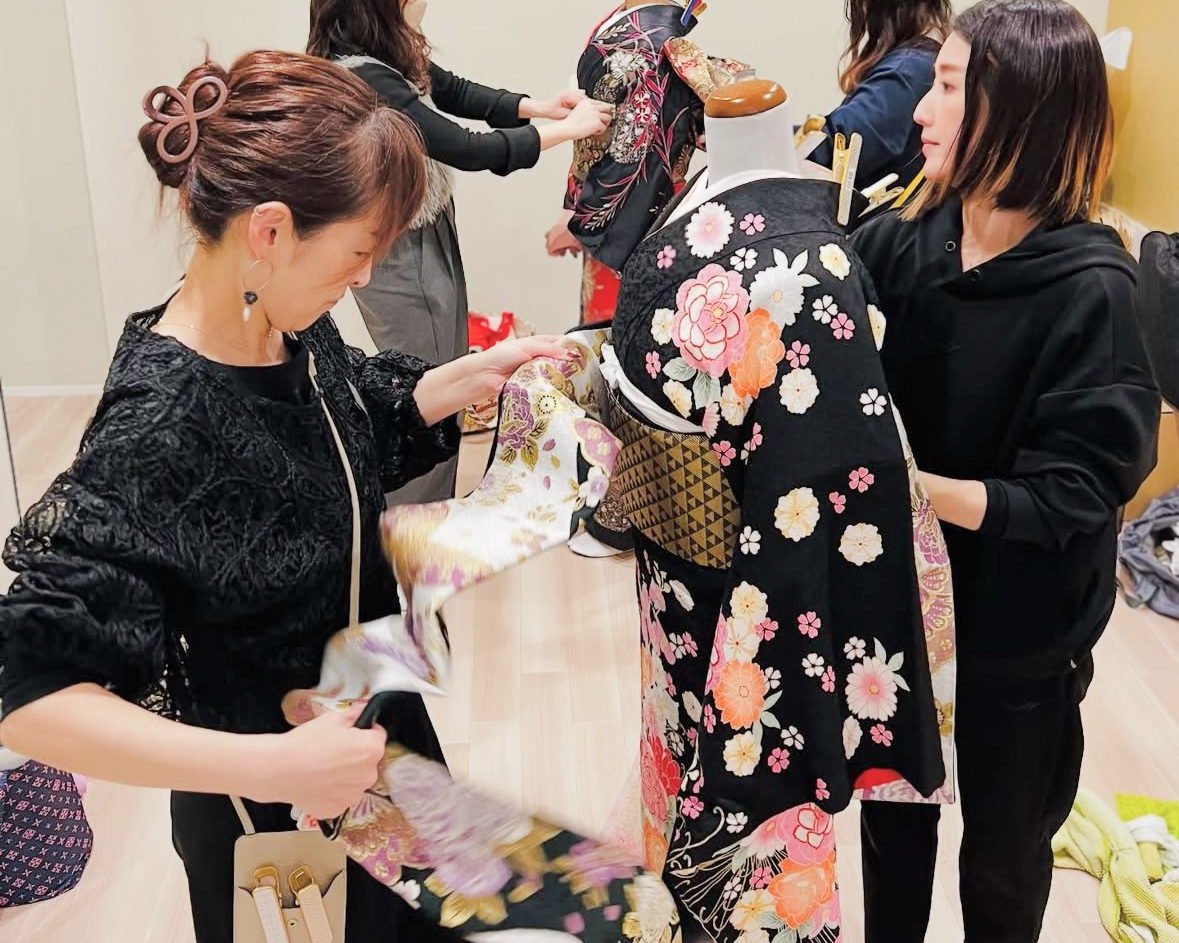 香川県丸亀市の美容院「エムコレクション」様にて、振袖専門の着付け講座を担当しております。