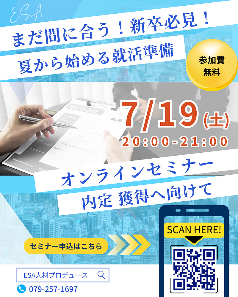 「夏から始める!まだ間に合う就活準備」オンラインセミナーを開催します。