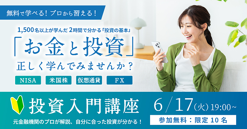 そこで「初めての投資」を学びたい方向けの【参加無料】の投資入門講座を開催します。