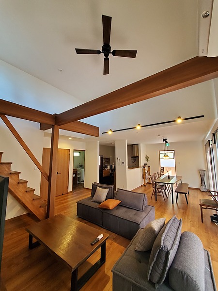 私が行った時は兵庫もまだまだ暑くその日は外にいるだけで汗が止まりませんでした。ですがモデルハウスの中に入るとエアコンが効いているのもあり涼しかったです。ここで驚いたのは30坪程度の2階建だったのですがなんとエアコン1台で家全体を冷やしているとの事でした驚きですね笑 今までの一般的な家では各部屋にエアコン一台が当たり前だったので本当にレベルが全然違うものだと感じました。