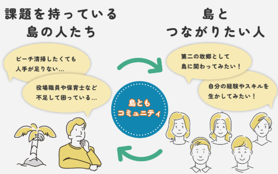 地域が発信するテーマ――例えば「伝統行事の継承」や「未利用資源の活用」といった、理想や課題に共感する仲間が集まり、コミュニティを形成する。あるいは逆に、地域外の方から「この島でこんな価値を形にしたい」という情熱が持ち込まれ、それを地元のコーディネーターが受け止めて具現化する。