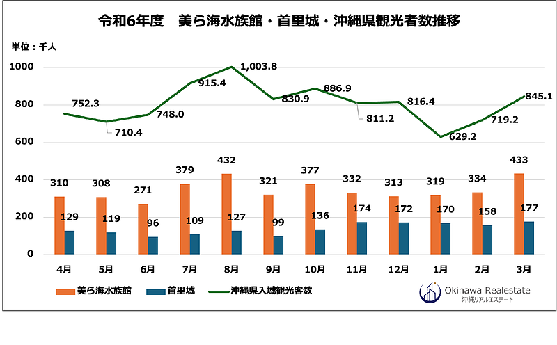 令和6年度(2024年度)の来場者数を見ると、美ら海水族館は約412万人、首里城公園は約166万人です(出典:内閣府沖縄総合事務局)。