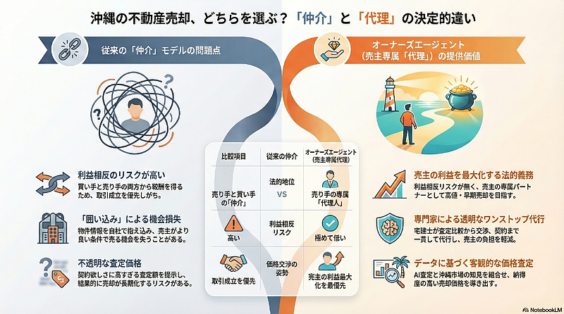 売主様が冷静に、そして納得をもって判断できるように。数字だけではなく、「想い」や「目的」を大切にできる環境を整えたい。そんな想いが、売主専属の「沖縄オーナーズエージェント」というサービスをつくる原点になりました。今回のコラムでは、この売主専属代理という仕組みが、なぜ沖縄の不動産市場で必要とされるのか、その背景と価値を丁寧にお伝えしたいと思います。