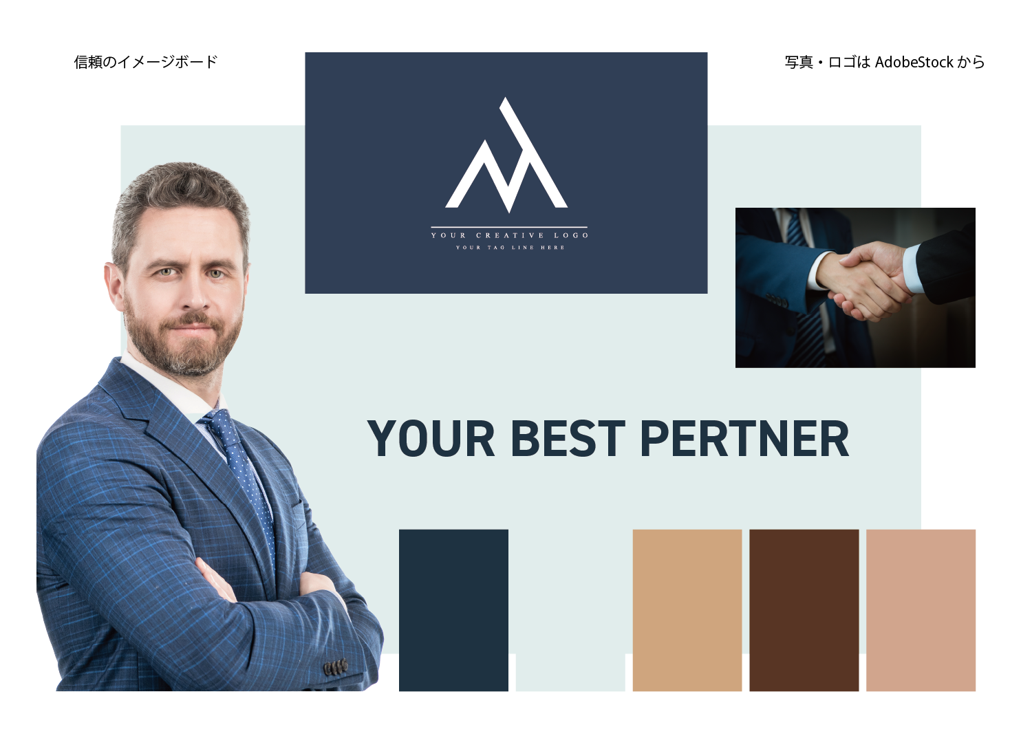 会社が先進的であろうと伝統的であろうと会社の価値を伝えるコンセプトとして「信頼性」は欠かせない要素です。「信頼性」を表現したいときには落ち着いたトーンがお勧めです。