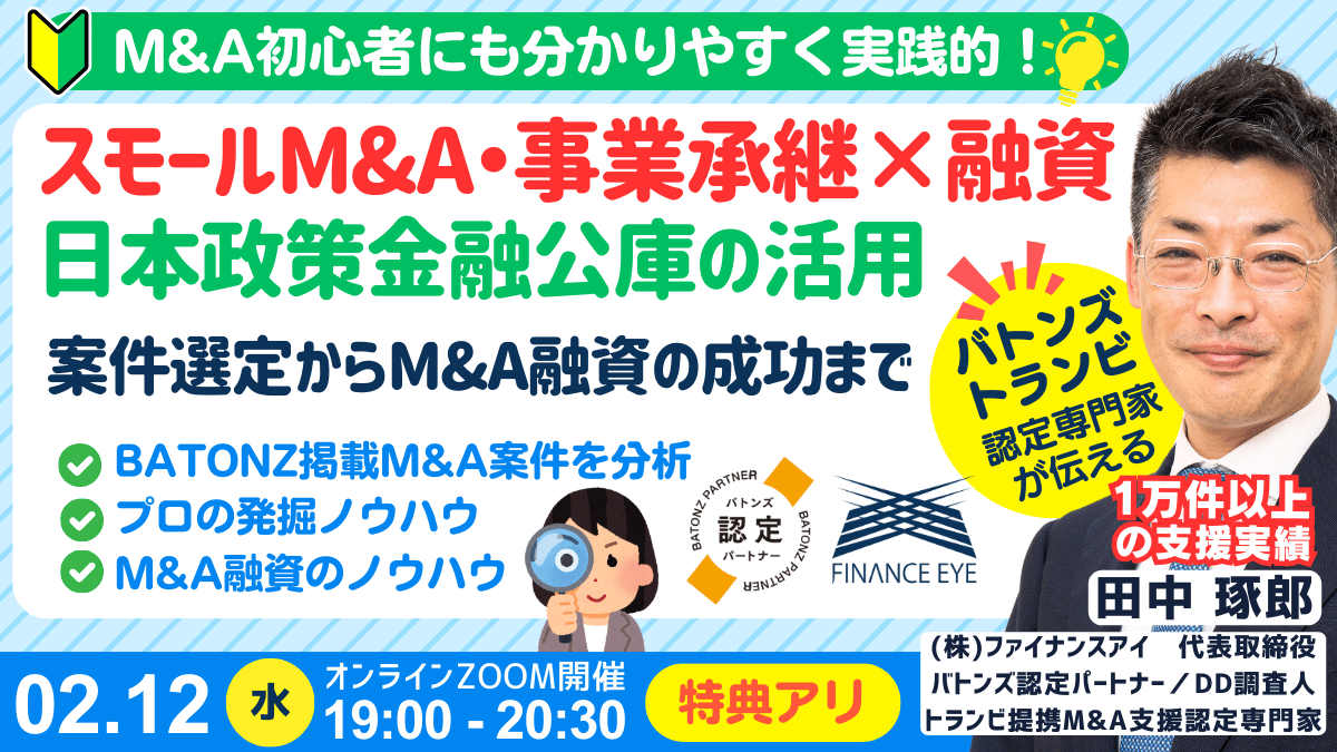 #M&A #事業承継 #M&A融資 #M&A資金調達 #M&A創業融資 #M&A買収資金 #M&A査定 #M&A診断 #M&A鑑定 #M&A買手 #M&Aセカンドオピニオン #M&A起業 #M&Aセミナー #個人M&A #スモールM&A
