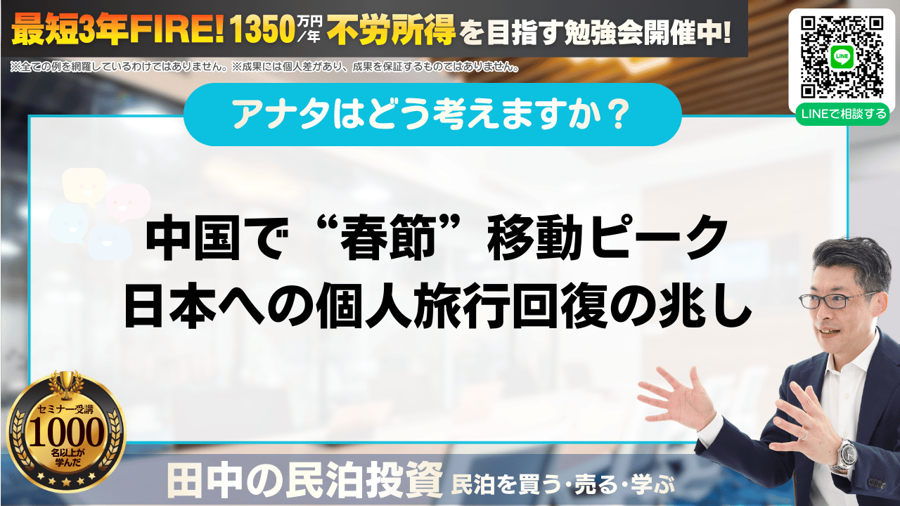 【春節で回復の兆し】中国個人旅行が戻る今、民泊投資はどう読むべきか?