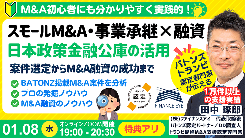 ■日本で唯一のM&A✕融資×起業の専門家の『ファイナンスアイ田中』が伝えるスモールM&A×融資の成功法