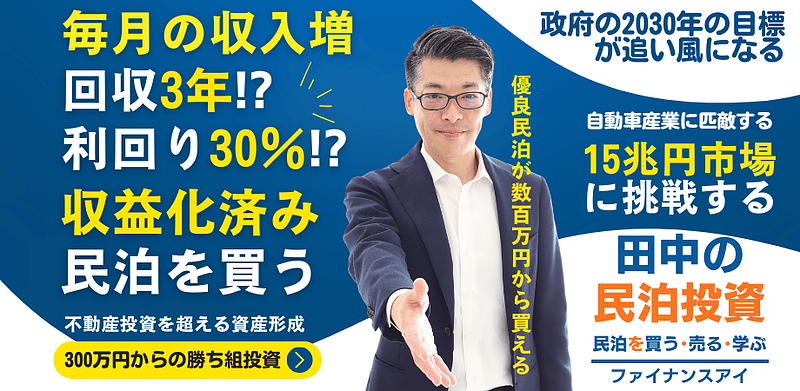 今回のセミナーでは、民泊投資・M&A・融資の専門家である ファイナンスアイ代表 田中琢郎 が、はじめての方でも理解できるように「収益化済み民泊を買う投資」を体系的に解説します。