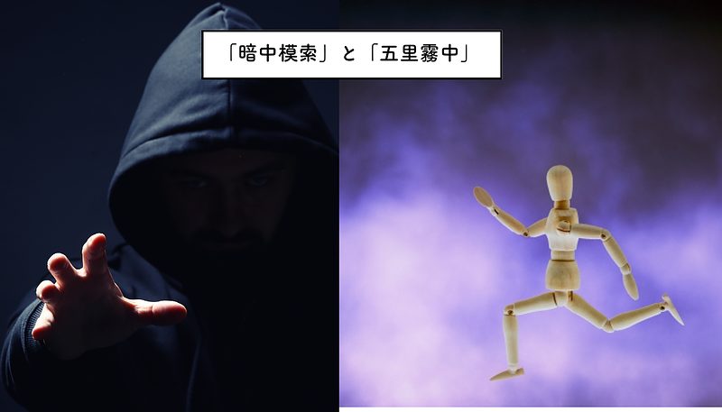 「暗中模索」と「五里霧中」は、どちらも「先が見通せない」状況を表しますが、「暗中模索」は「手がかりがない中で試行錯誤する」という前向きなニュアンスが強い一方、「五里霧中」は「霧の中で方向が分からず、ただ迷っている」状態を指します。