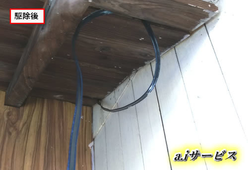 御自宅の裏手辺りに位置する一階の軒に配線されて