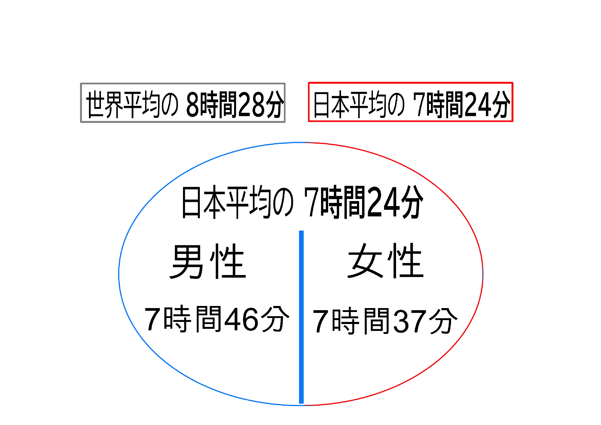世界平均の 8時間28分 と比べると、1時間以上短いことがわかっています。