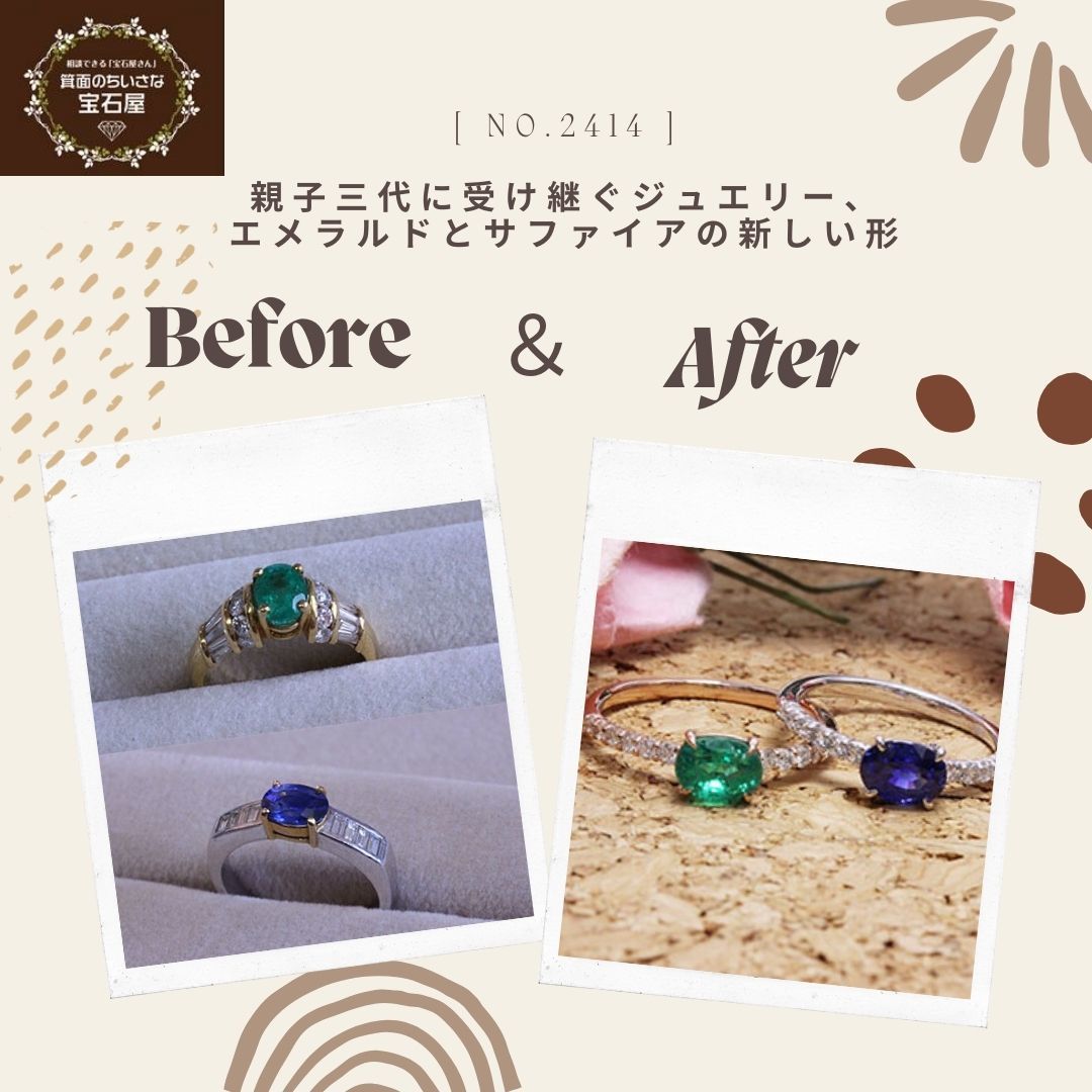 今回は、譲り受けたエメラルドとサファイアの指輪を、お嬢様たちへのプレゼント用にリフォームしたいとのご要望です。