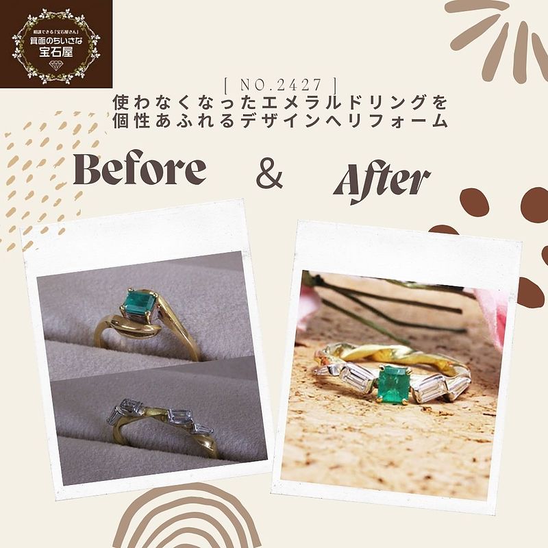 使わなくなったエメラルドリングを個性あふれるデザインへ