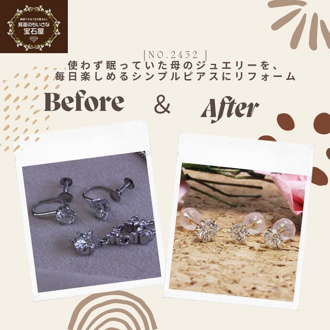 お母様の形見として受け継がれたダイヤの指輪やネックレス、イヤリングなどのジュエリーを「使わないのはもったいない」との思いから、リフォームをご相談いただきました。
