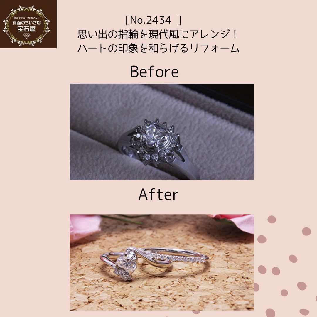 今回ご相談いただいたのは、ハートシェイプのダイヤモンドリング。可愛らしさが際立つデザインのため、ハートの印象を和らげたデザインをご希望でした。