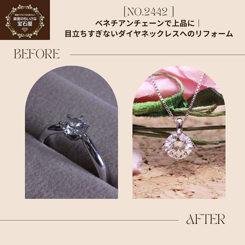 目立ちすぎないダイヤネックレスへのリフォーム