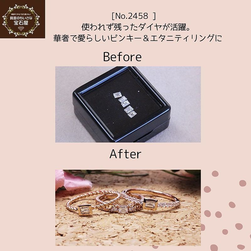 以前リフォームされた際に手元に残った5石の角型ダイヤモンドを、ご自身と2人のお嬢様用に活かしたいというご要望でした。