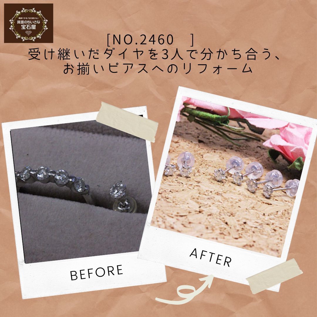 幸いにも、指輪とピアスに使われていたダイヤのサイズが揃っており、違和感なく3セットのピアスに仕立て直すことが可能でした。