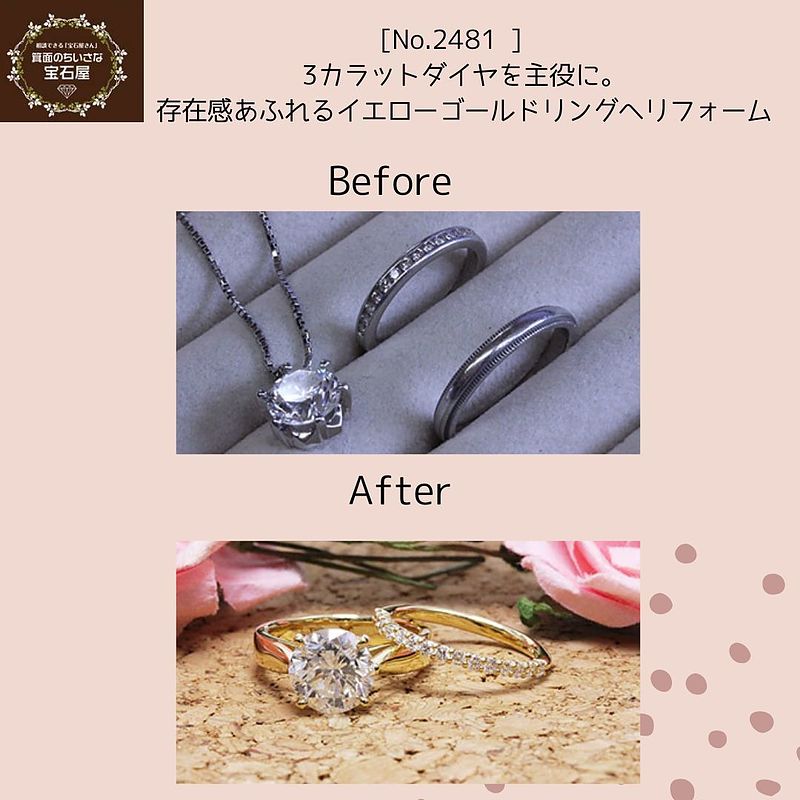 ホームページでご覧いただいた事例のデザイン(NO.2305)をベースに、イエローゴールドで統一し、重ね付けできる仕上がりをご希望されていました。