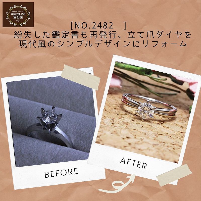 内容は、昔の立て爪ダイヤモンドリングのリフォームに加え、紛失してしまった鑑定書の再取得が可能かというご質問でした。