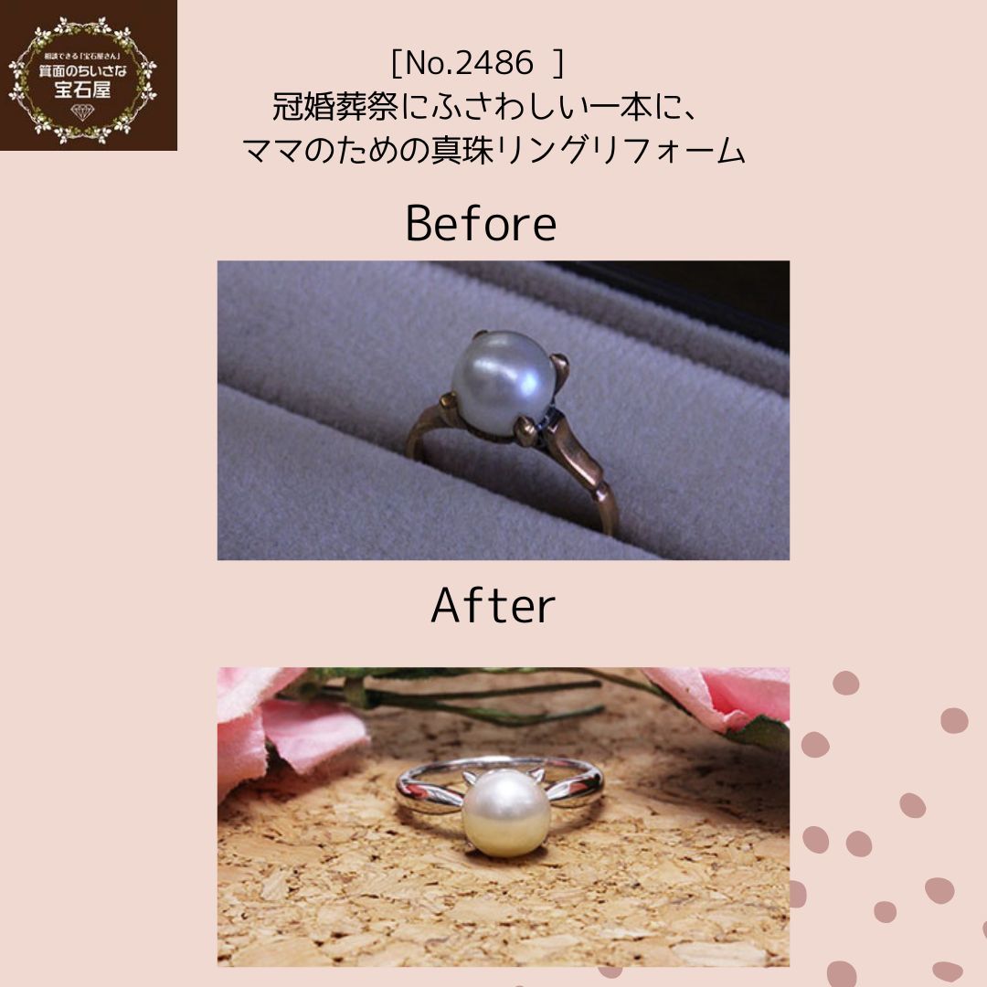 摂津市からお越しのお客様は、春に控える卒園式や入学式をきっかけに、真珠ネックレスの糸替えと、手持ちの真珠リングのリフォームをご相談くださいました。