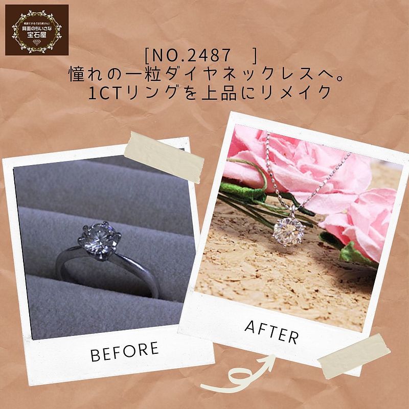 憧れの一粒ダイヤネックレスへ。1ctリングを上品にリメイク