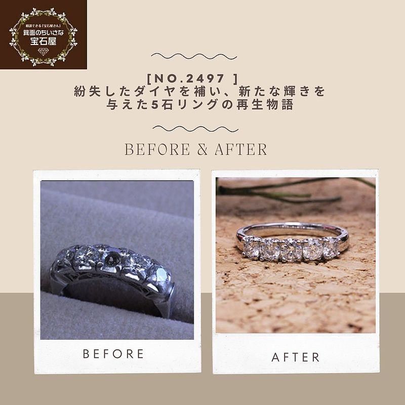 紛失したダイヤを補い、新たな輝きを与えた5石リング