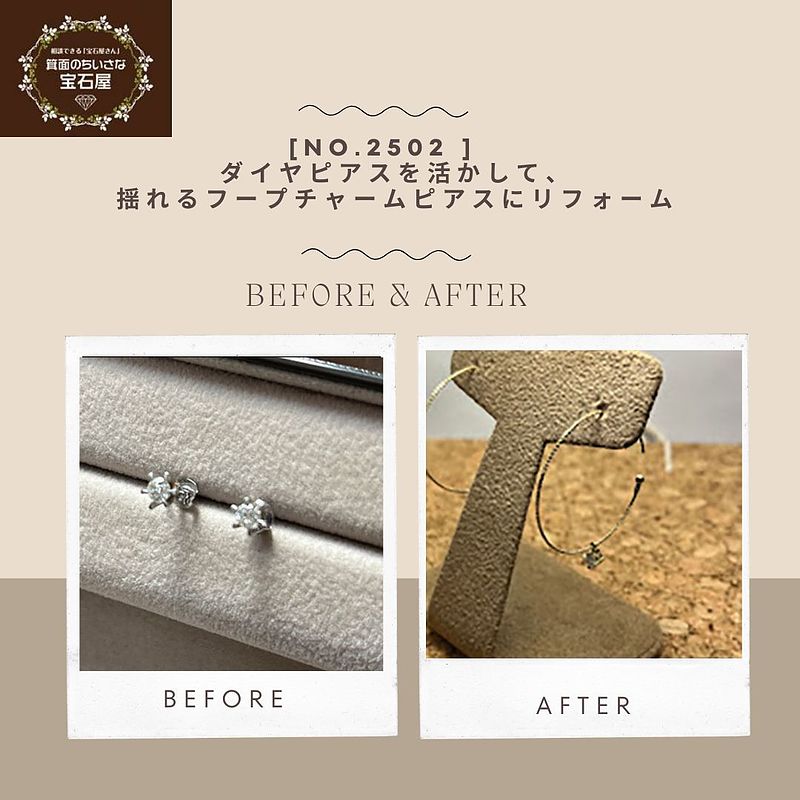 豊中市にお住まいのお客様より、「手持ちのプラチナのダイヤピアスを使って、フープタイプのピアスにリフォームできないか」というご相談をいただきました。